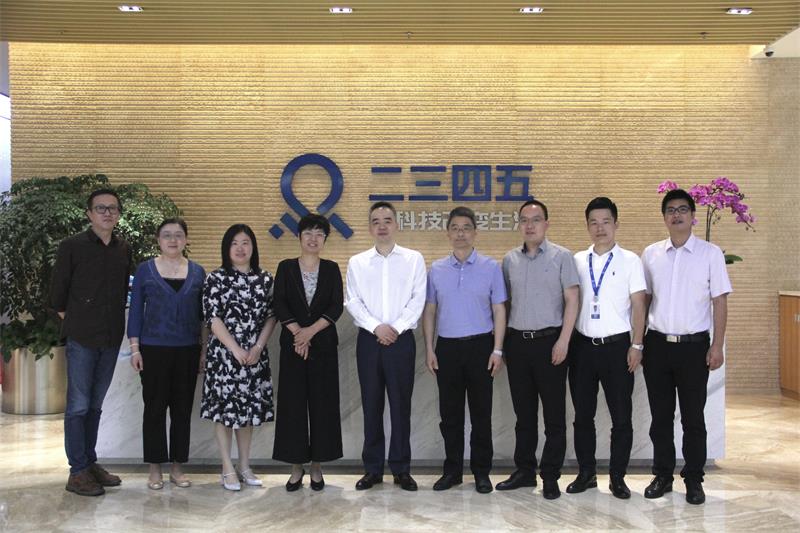 2020年7月17日,中共浦東新區(qū)高橋鎮(zhèn)黨委書記周秀華,高橋鎮(zhèn)黨委委員、副鎮(zhèn)長嵇晨清,高橋鎮(zhèn)區(qū)域發(fā)展辦主任張艷,高橋鎮(zhèn)財政所所長黃英,高橋鎮(zhèn)第六投資促進(jìn)中心主任徐懌冰一行蒞臨上海二三四五網(wǎng)絡(luò)控股集團(tuán)股份有限公司(以下簡稱“二三四五”,002195.SZ)總部慰問調(diào)研。二三四五集團(tuán)董事長陳于冰先生,二三四五集團(tuán)黨支部書記、董事、副總經(jīng)理黃國敏以及相關(guān)負(fù)責(zé)人等陪同參觀并座談。
